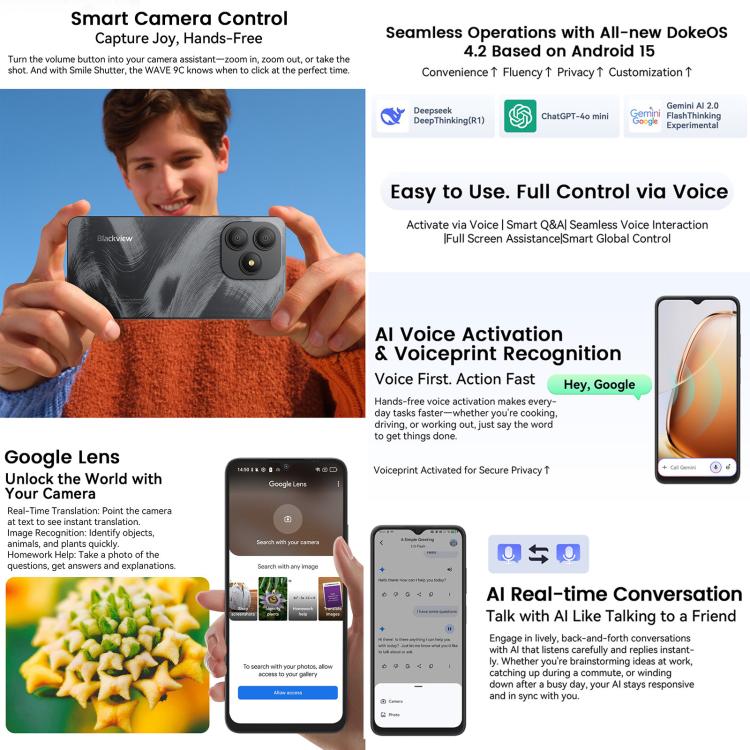 Blackview WAVE 9C, 4GB+64GB, 6.56 inch Android 15 Unisoc T603 SC9863A Octa Core, Network: 4G, OTG, 4GB+64GB